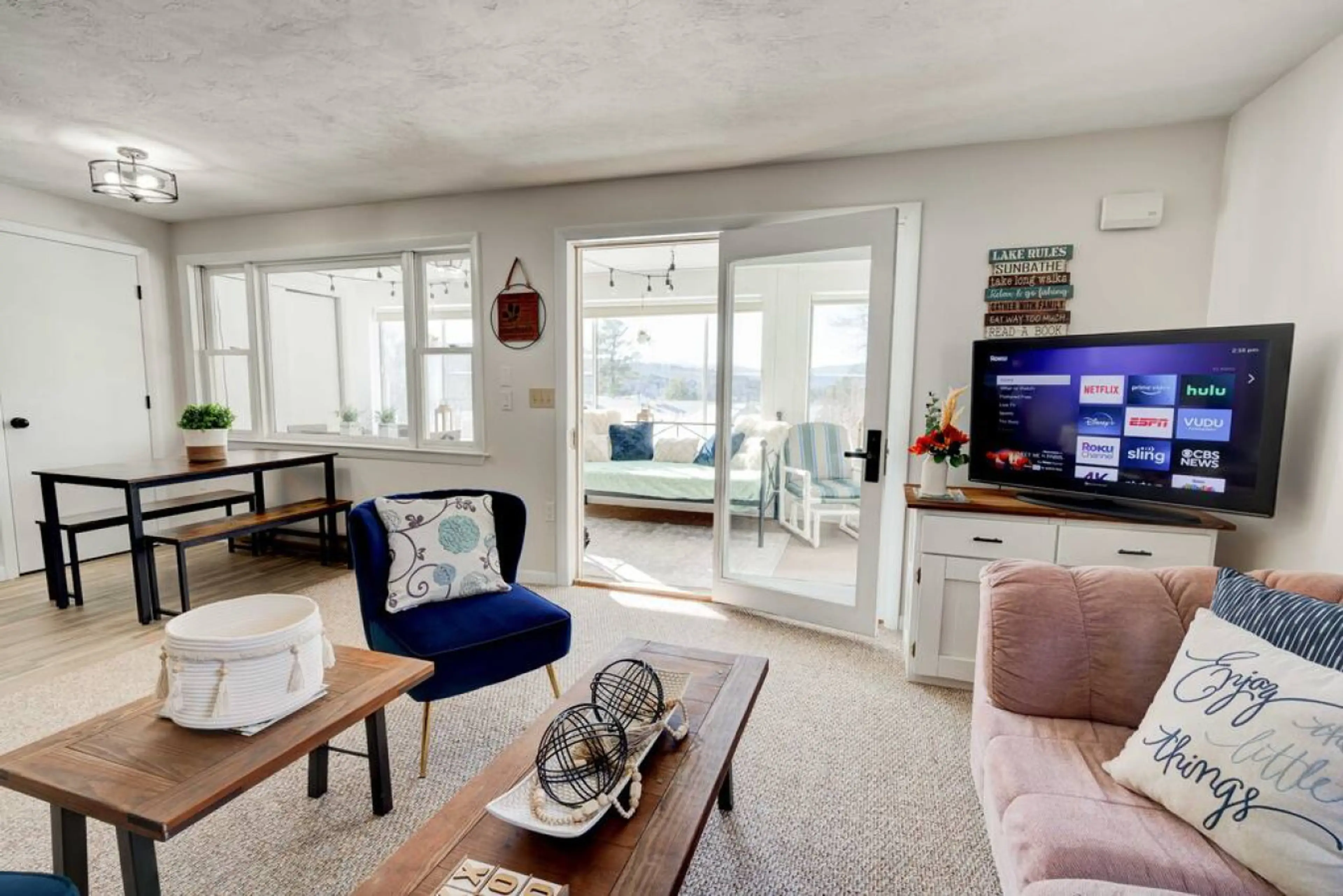 This 2-bedroom condo is spacious enough for the whole family or 2 families looking for a Lakeside getaway with a private beach. Private lake access to Newfound Lake! Enter the enclosed porch to feel a sense of relaxation start to take over. The large living room has a wood stove, open to the dining ...